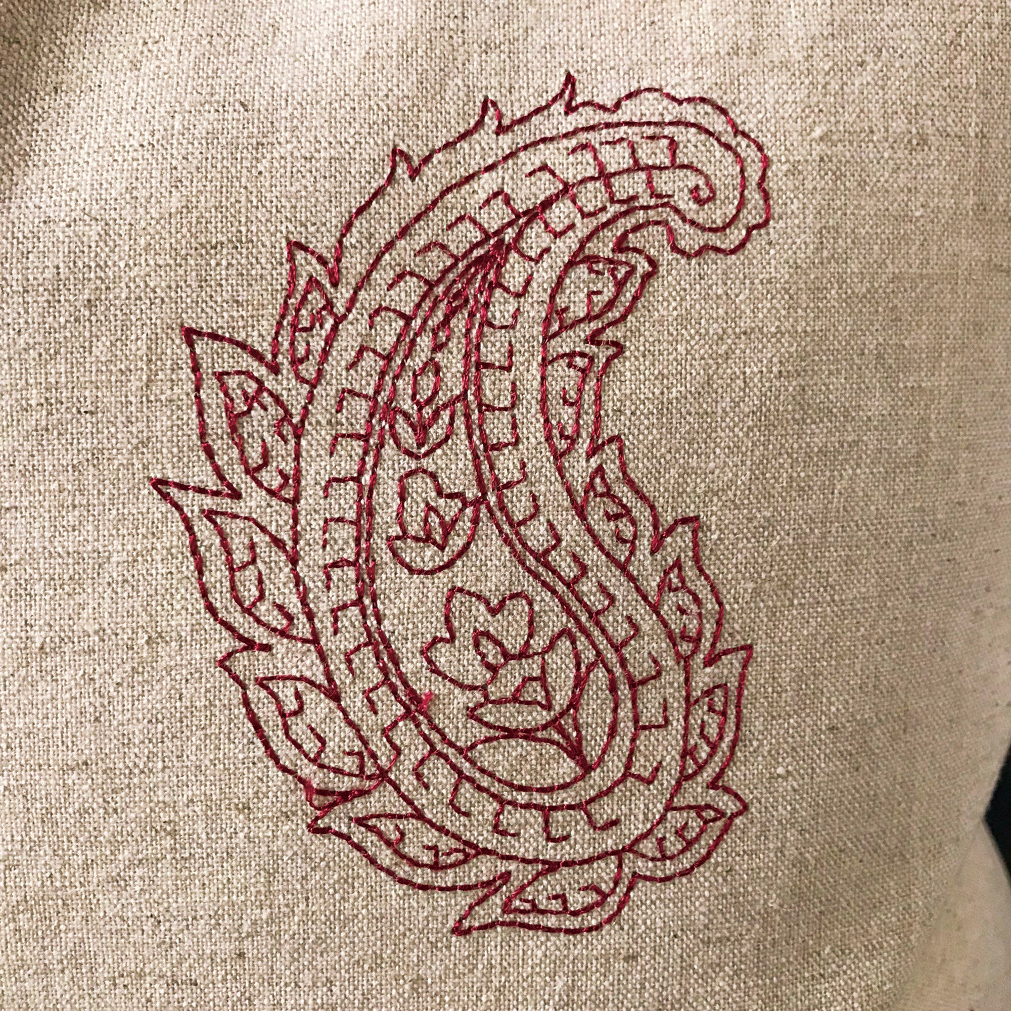 ⁌ Add rich texture and artisanal detail to your space with the Red Stitched Paisley Motif Throw Pillow Cover. Featuring a beautiful topstitched paisley pattern on a coarse linen blend fabric, this 20x20 pillow cover offers timeless charm and handcrafted appeal. Finished with a knife edge for a clean silhouette and a hidden zipper for convenience, it’s a versatile piece proudly made in the USA.