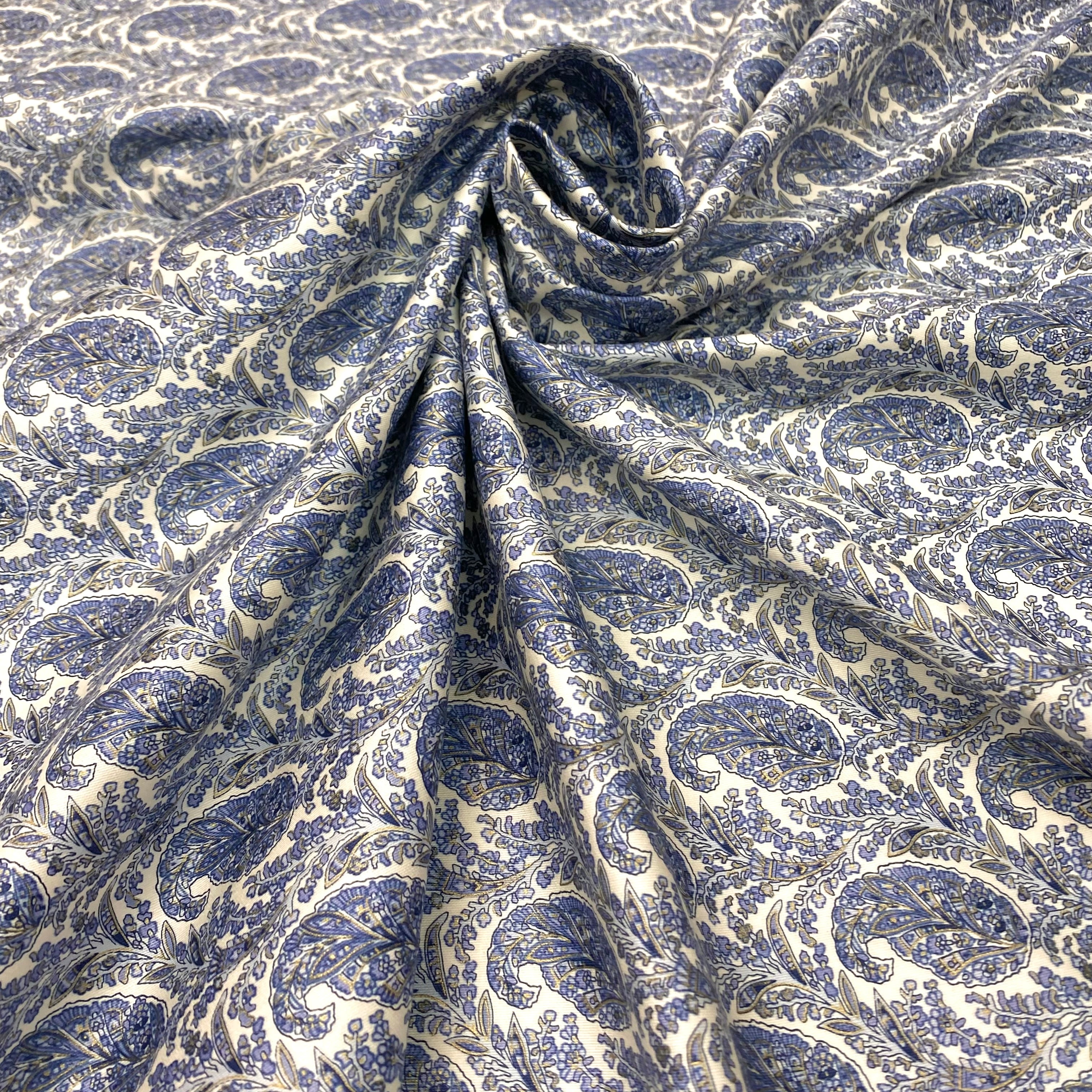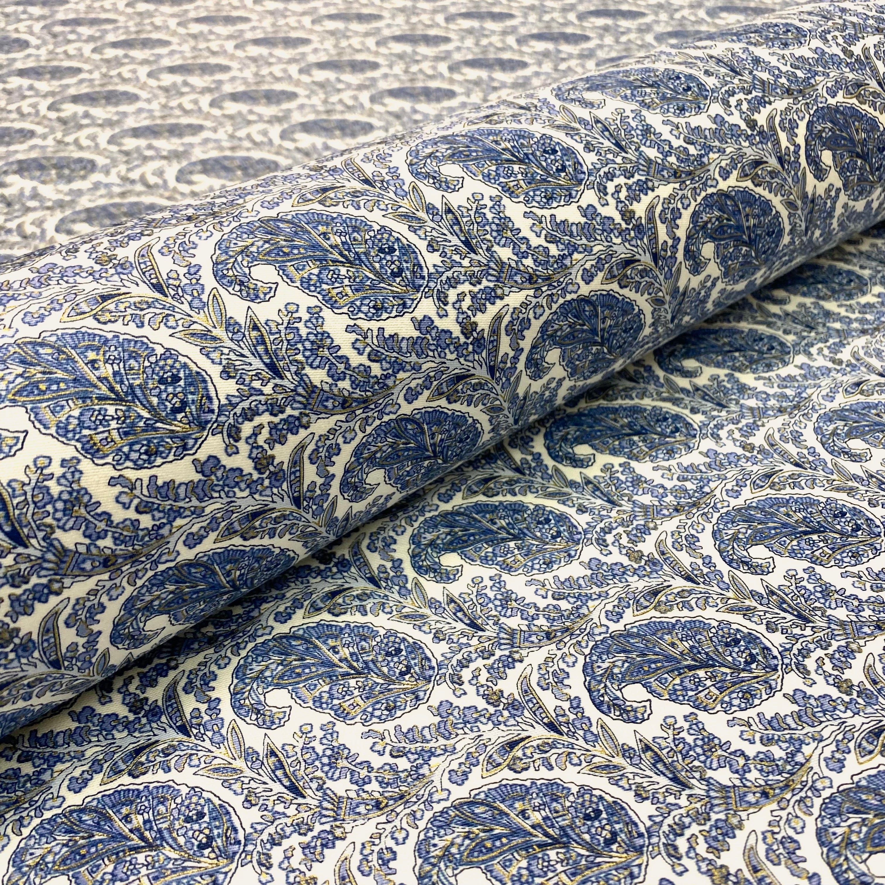 Blue Mist Paisley Traditional Cotton fabric 54"