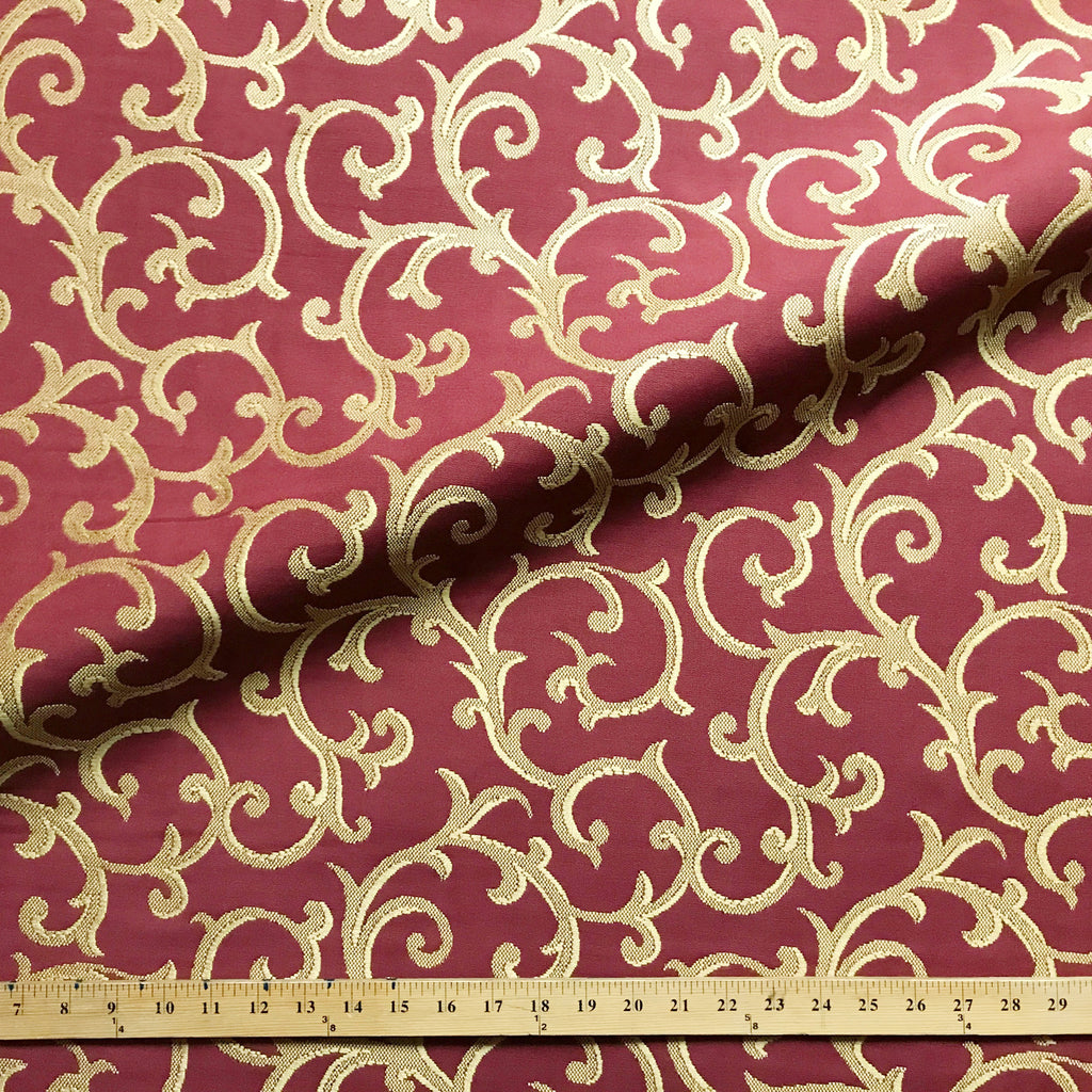 Red and Gold Motif Luxe Jacquard Upholstery Fabric