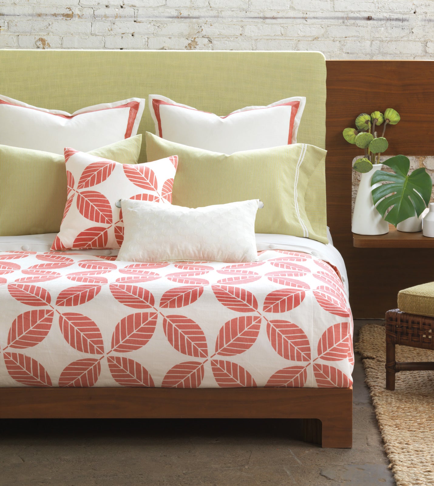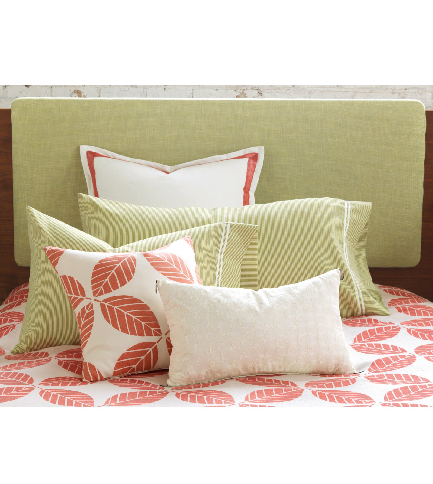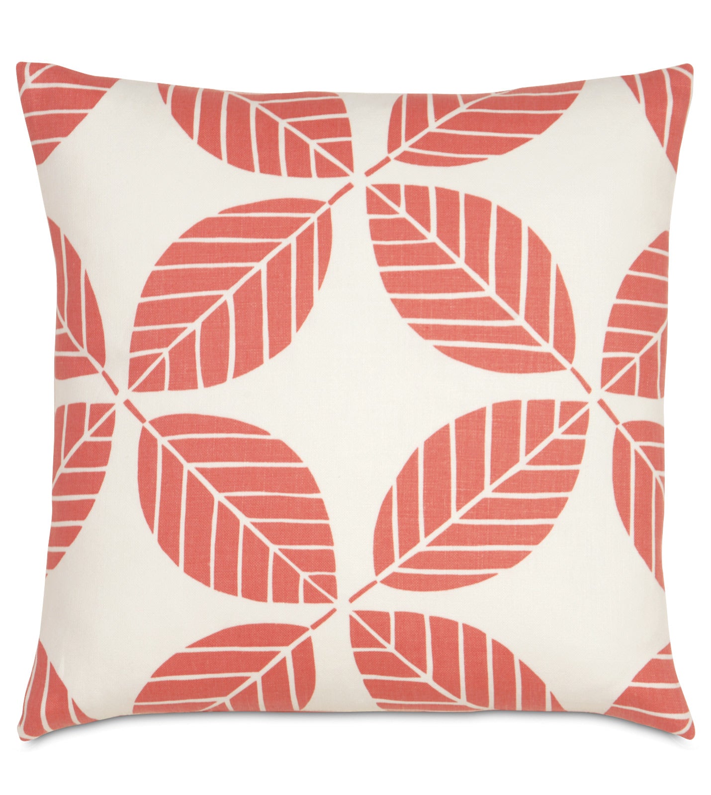 - Throw pillow with a geometric leaf design in coral