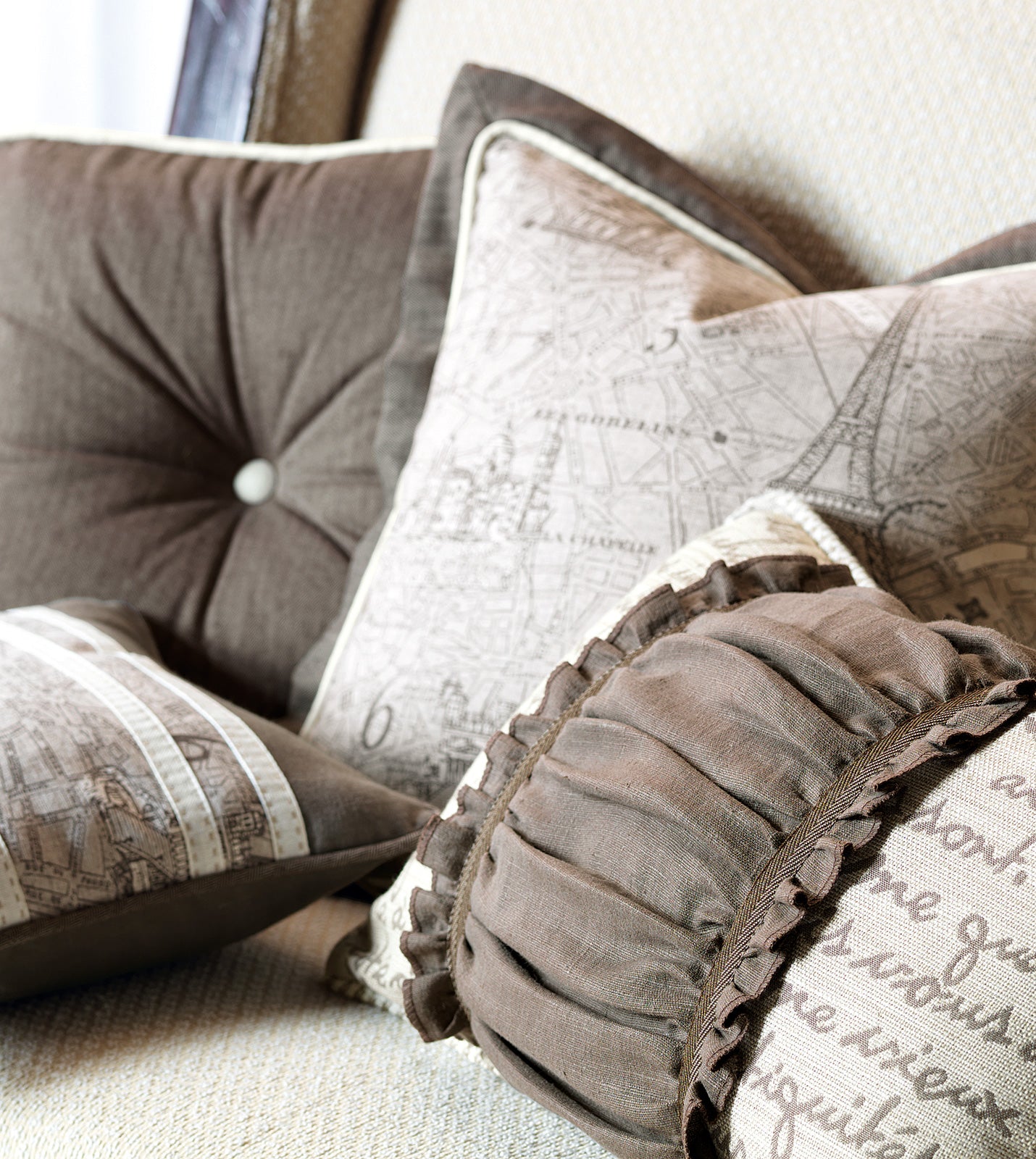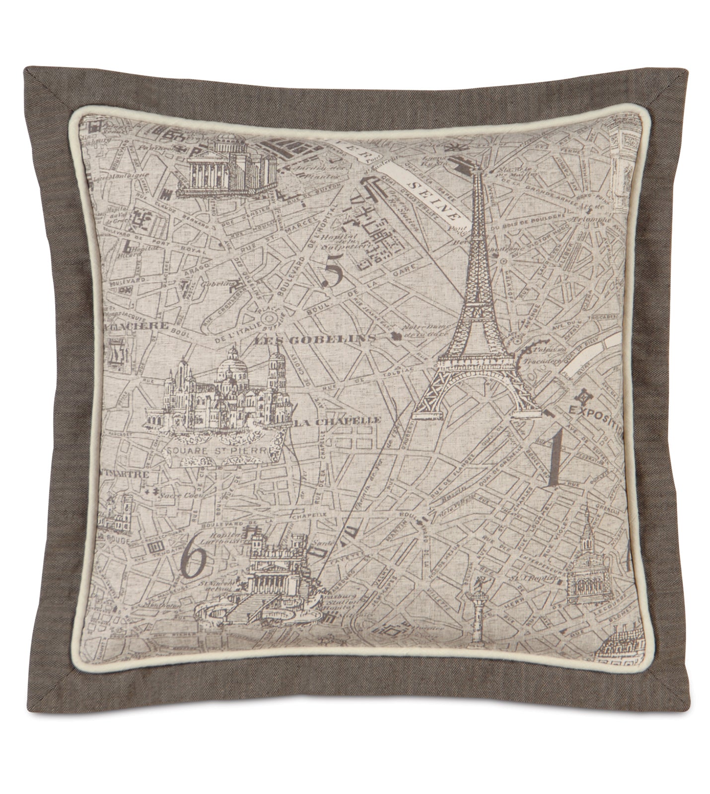 • 100% cotton decorative pillow in a vintage map motif fabric