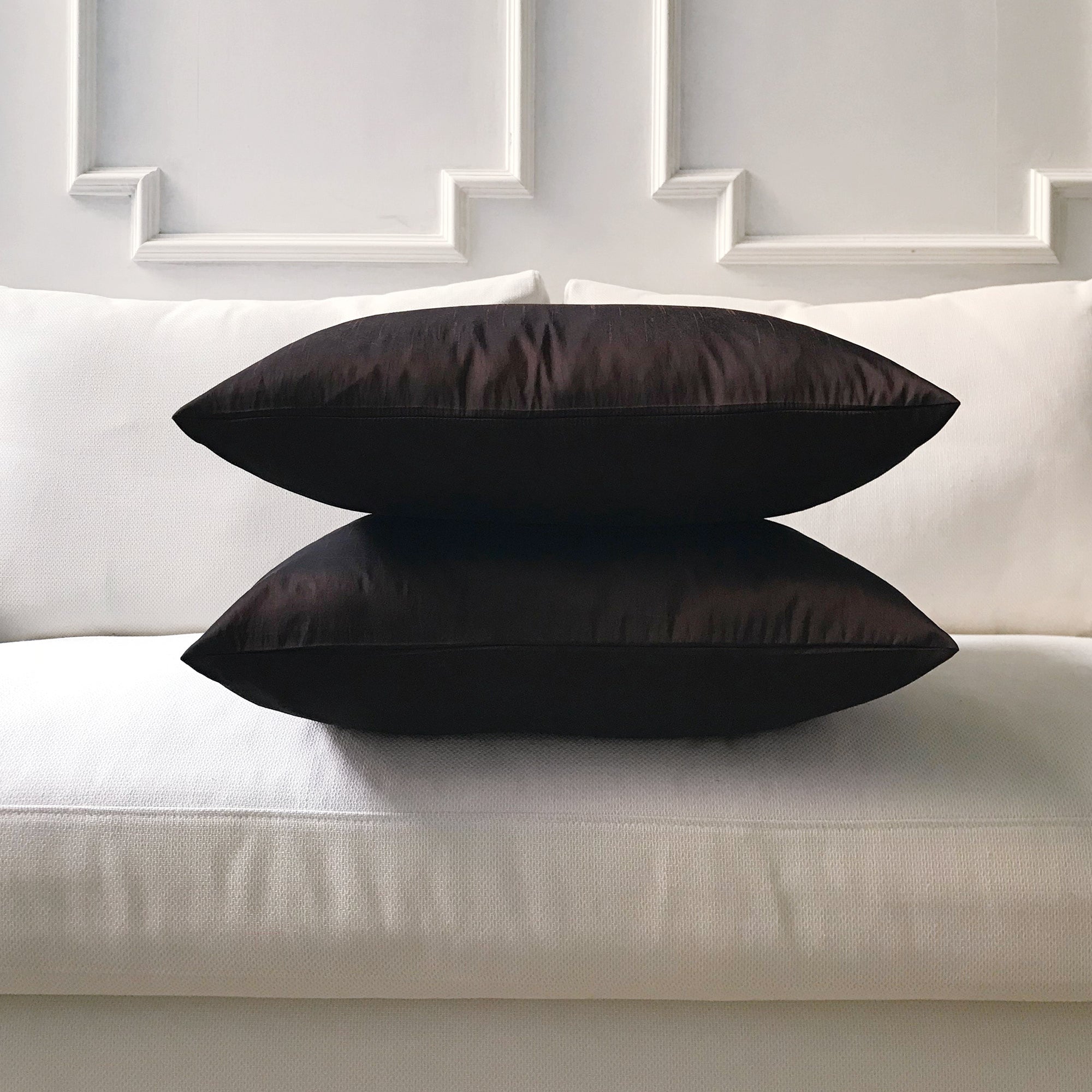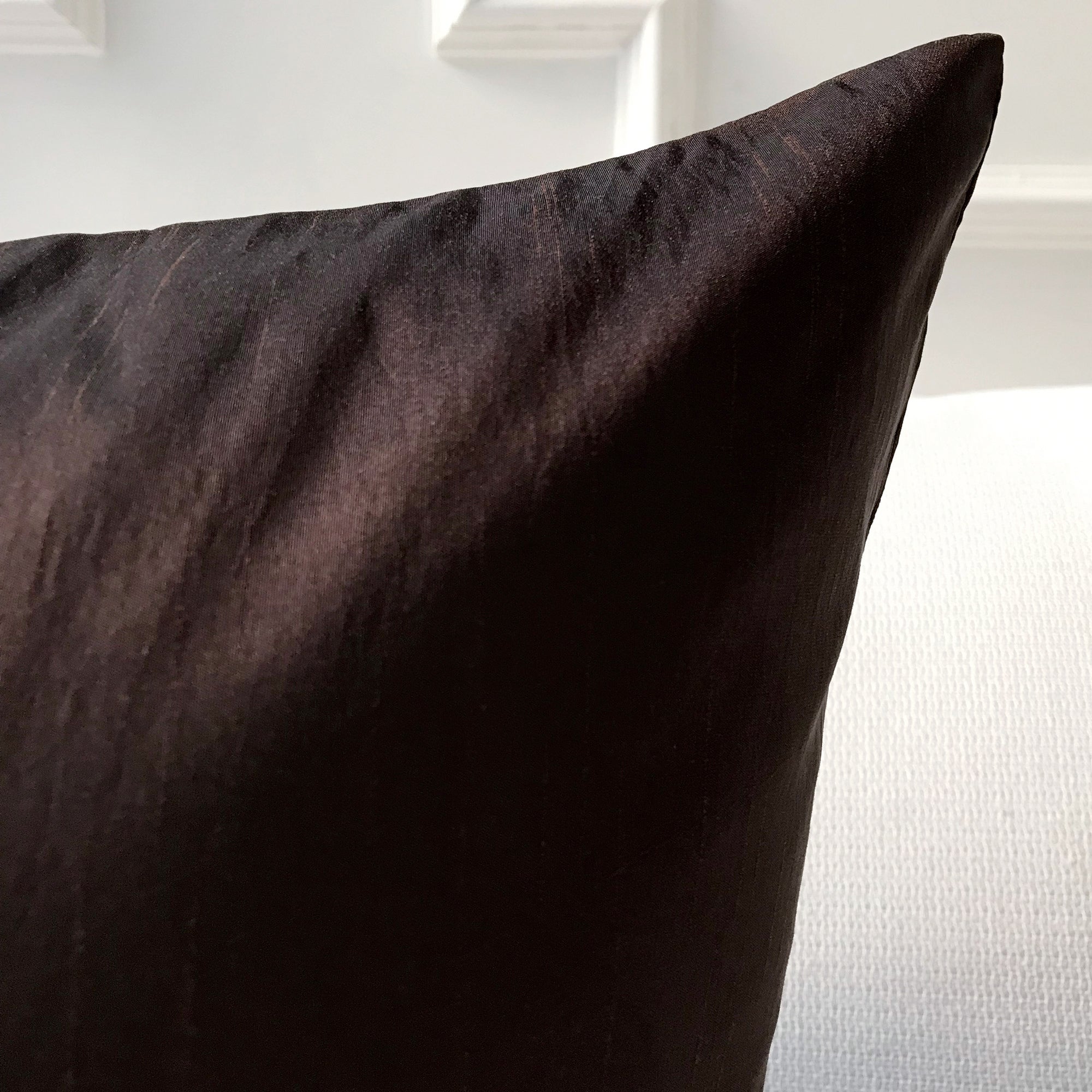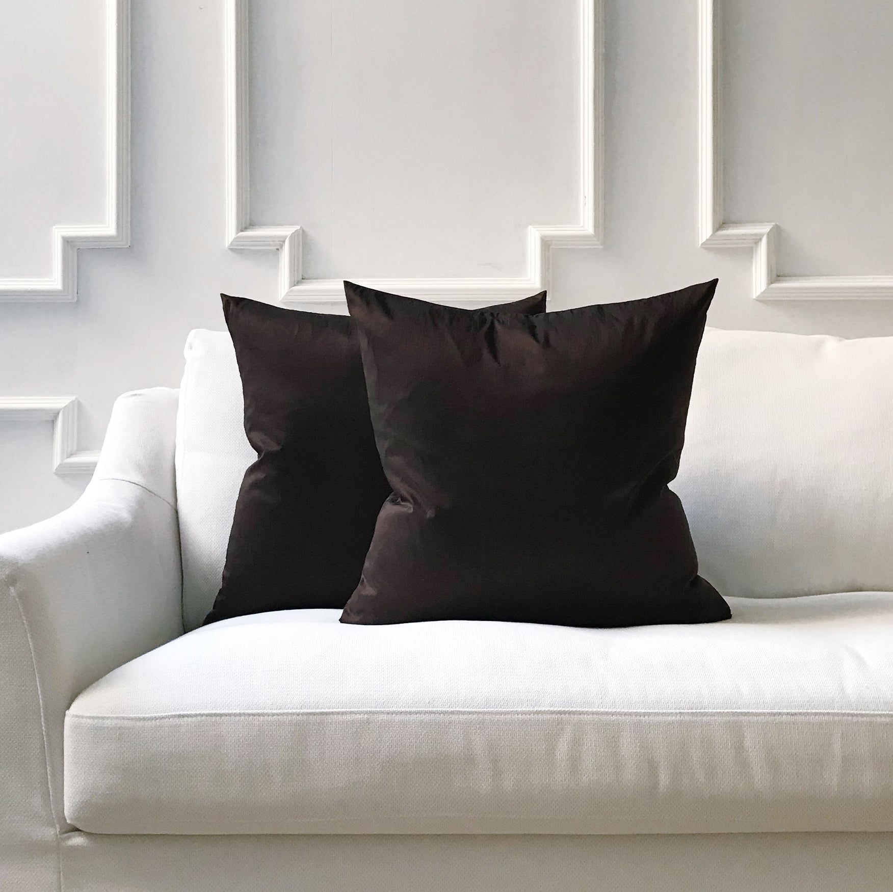 Dark Brown Solid Faux Silk Throw Pillow Cover 22x22
