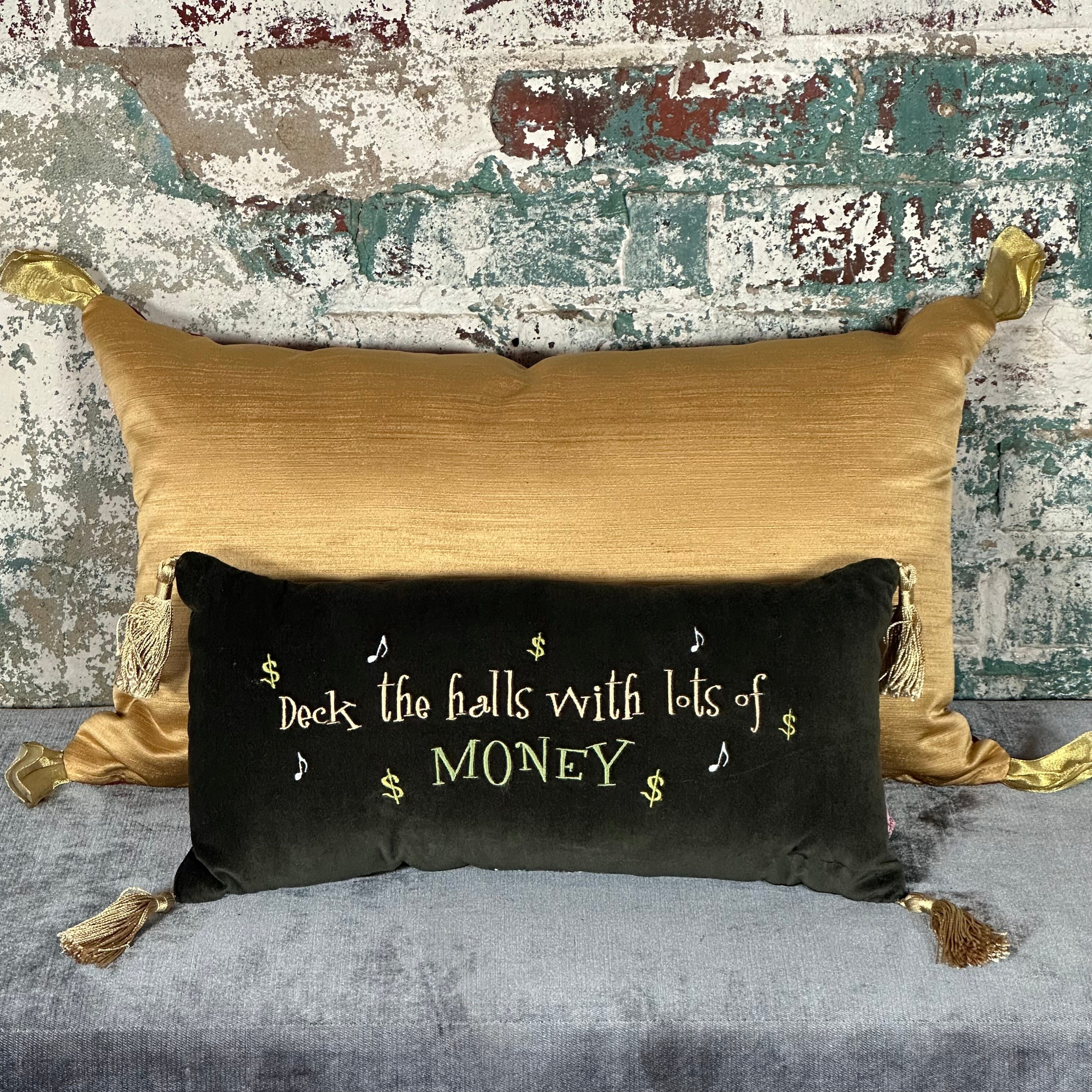 Pine Green 100% Velvet Phrase Pillow 8x16