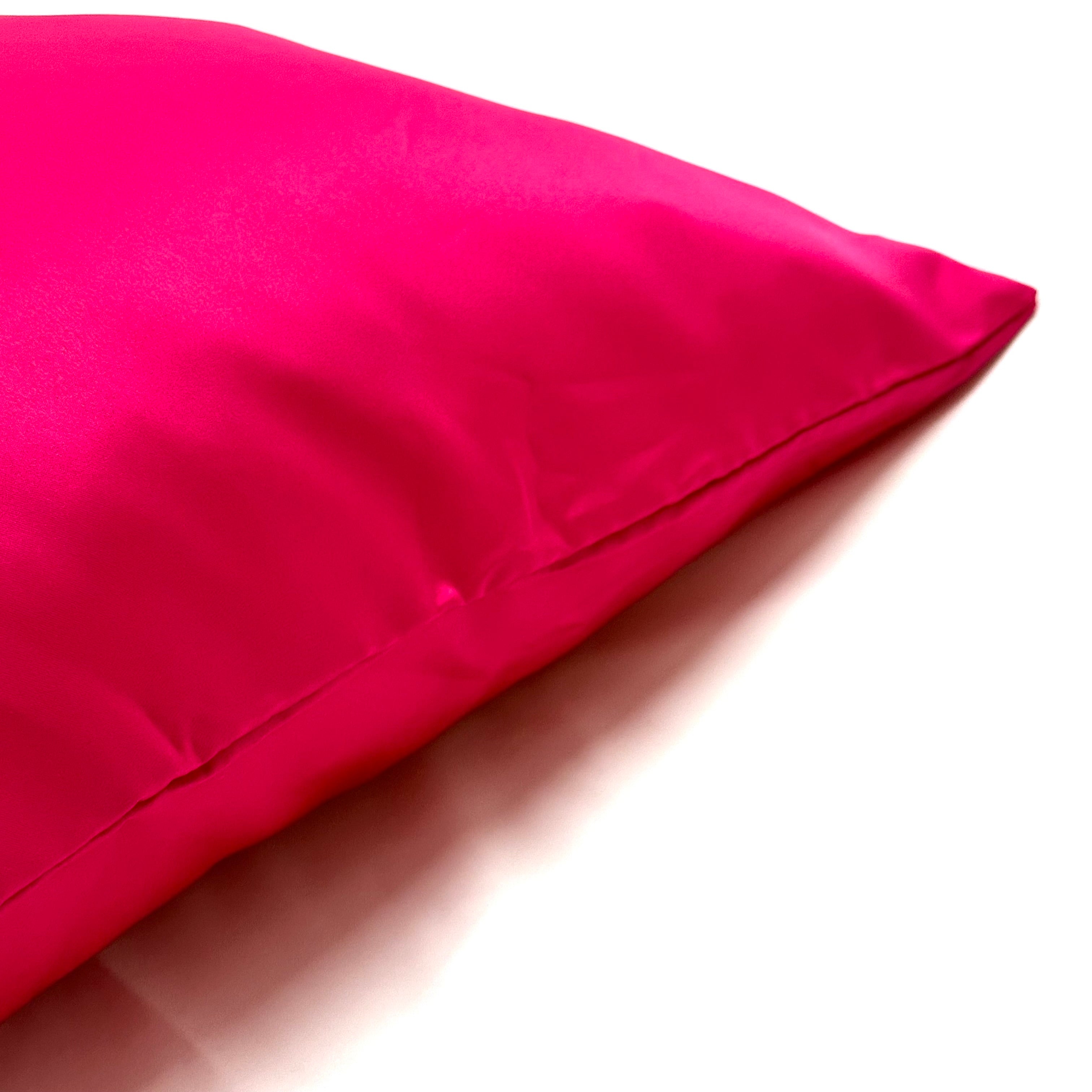 - Satin decorative pillow cover with a vibrant solid pattern in bold fuchsia