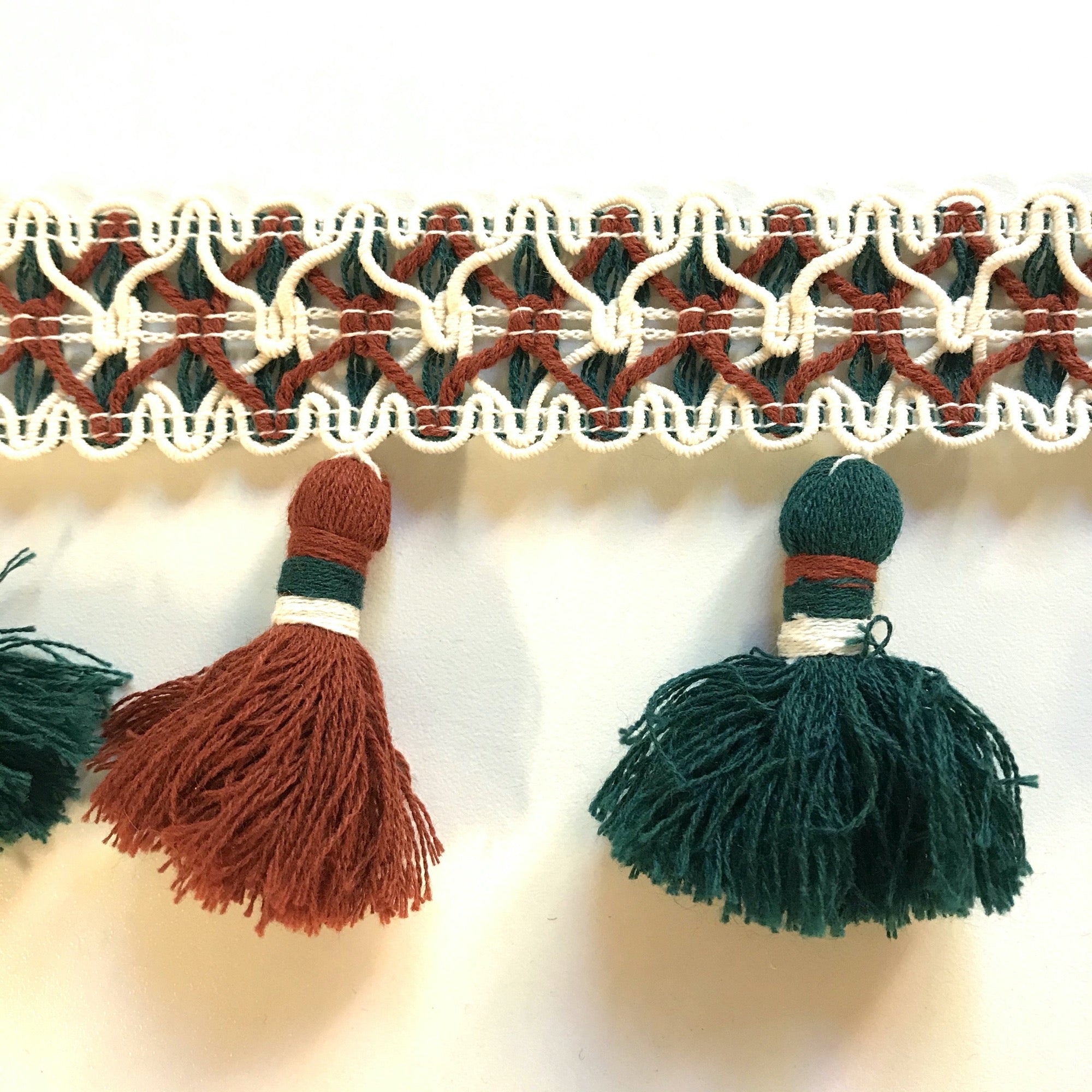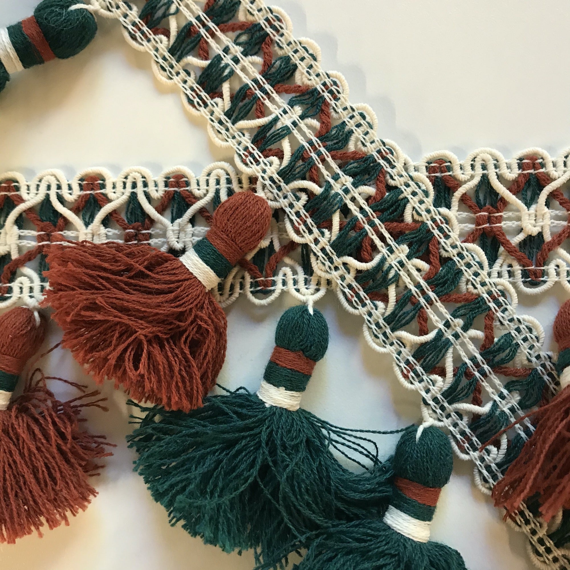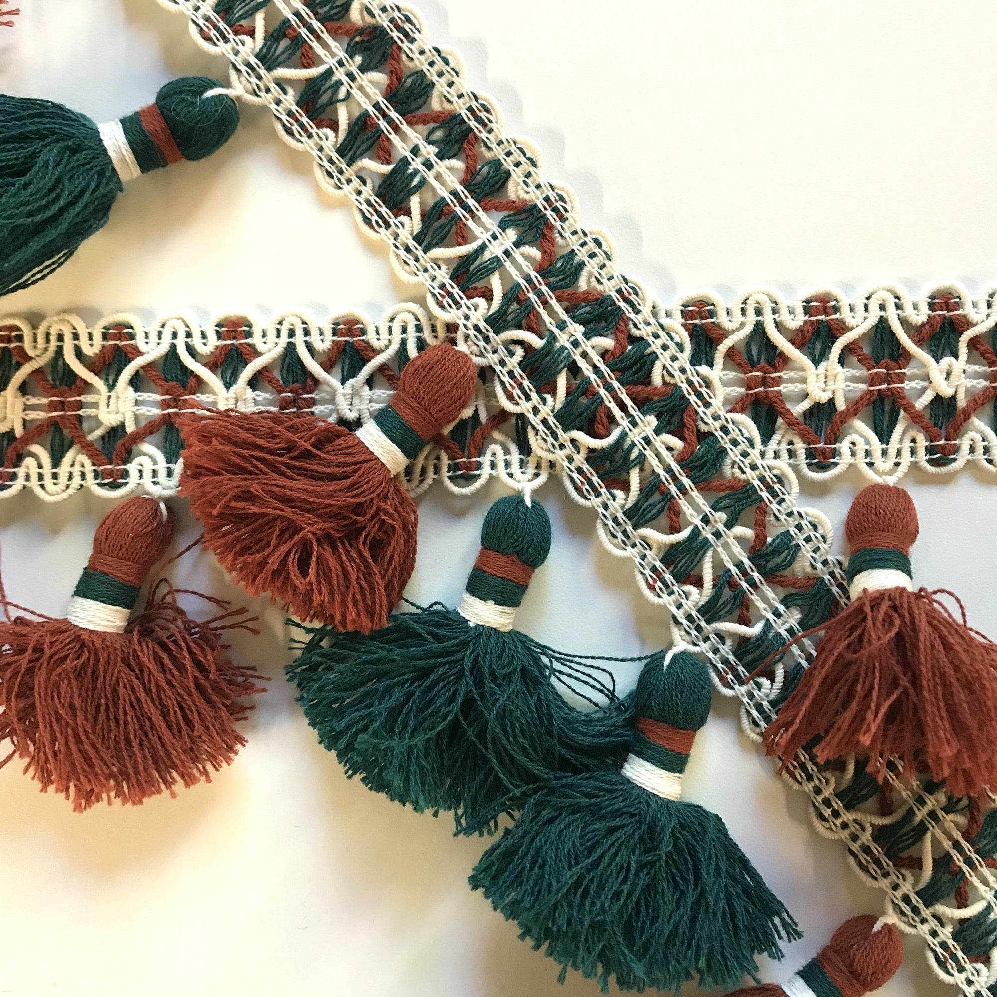 Burnt Orange and Evergreen High Quality Decorative Tassel Trim by the yard