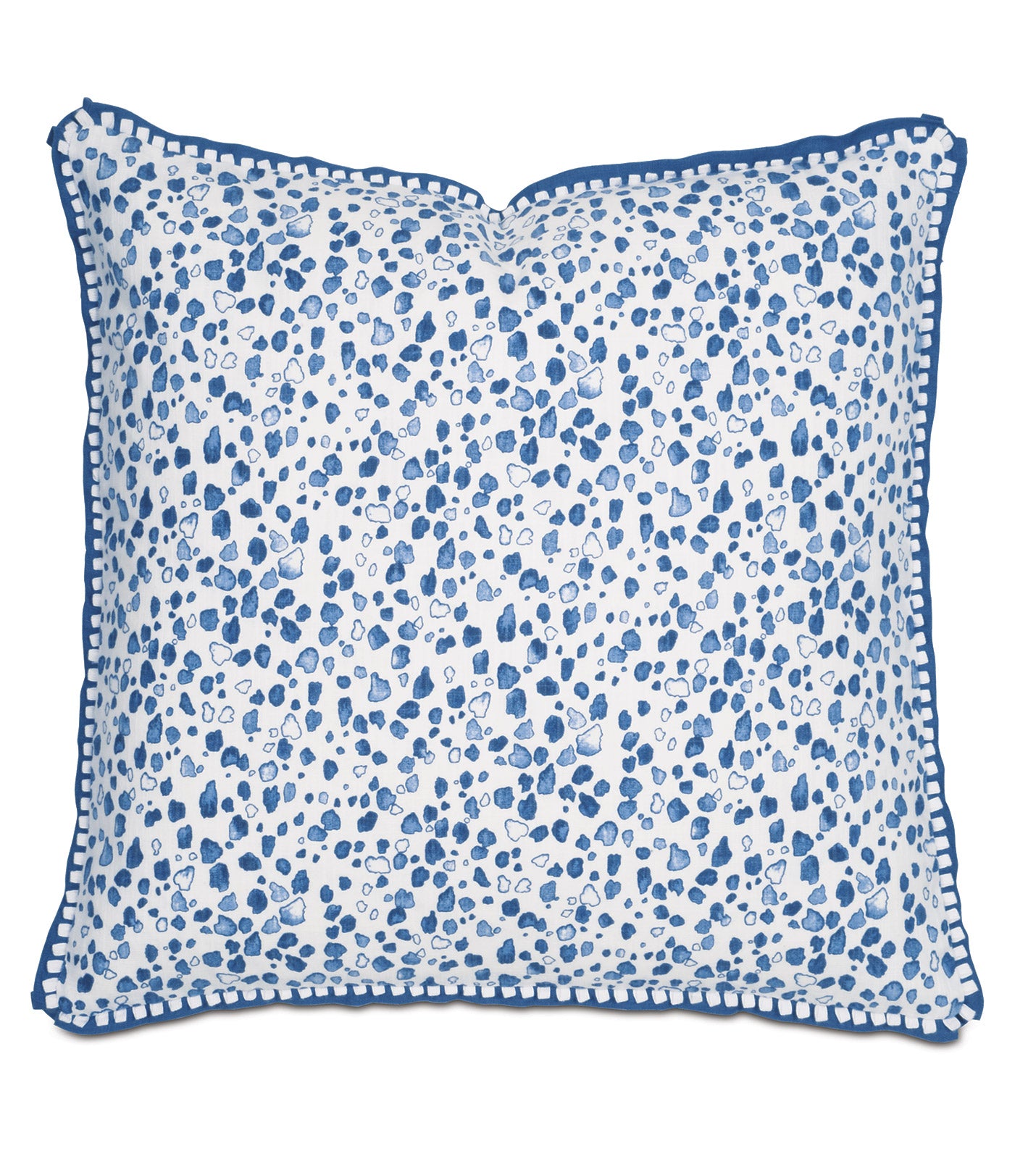 ⁌ Bring tropical charm and texture to your space with the Khaleo Blue Speckled Throw Pillow Cover. This 22x22 decorative pillow cover features a bold speckled design in tropical blue, paired with a solid white backing for crisp contrast. The loop trim edge with a 1/2" flange and butterfly pleat in each corner adds an elegant touch of detail. A hidden zipper closure ensures easy care, and it’s proudly made in the USA.