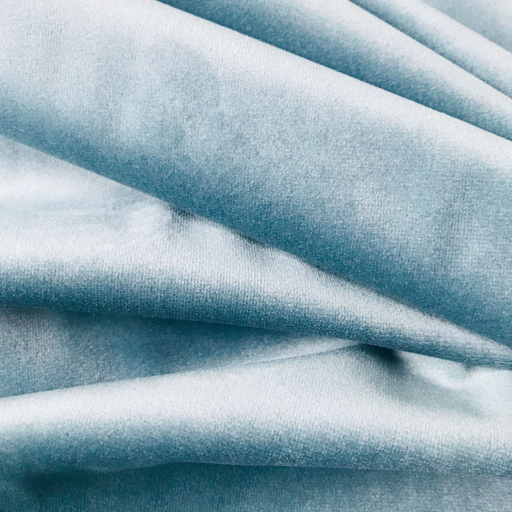 Adorn any interior with this Light Blue Contemporary Solid Velvet Upholstery Fabric 54", perfect for arts and crafts, DIY, upholstery, home decorating, and more. Give your bedding, chairs, cushions, windows and more a fresh new look with our selection of high quality fabrics curated by a team of trend leading designers. This luxurious solid velvet upholstery fabric in light blue meets flair with versatility, offering the perfect personal touch for any contemporary aesthetic. Designed and crafted by skilled textile artisans this fabric is made to last and never compromises on quality. All fabric is sold by the yard in 1-yard increments. Unfortunately, we do not accept returns on fabric orders but swatches are available.