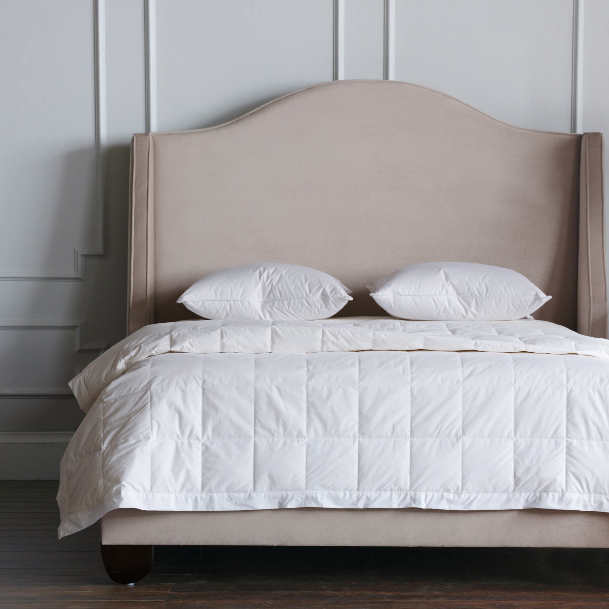 Morris Down Blanket features a 230 thread count shell with 100% duck down fill. The crisp cambric cotton shell is crafted with a baffle box design to prevent fill from shifting. Corner loops also allow for easy duvet cover attachment. Machine wash safe and dry safe at medium heat. Made in the USA.