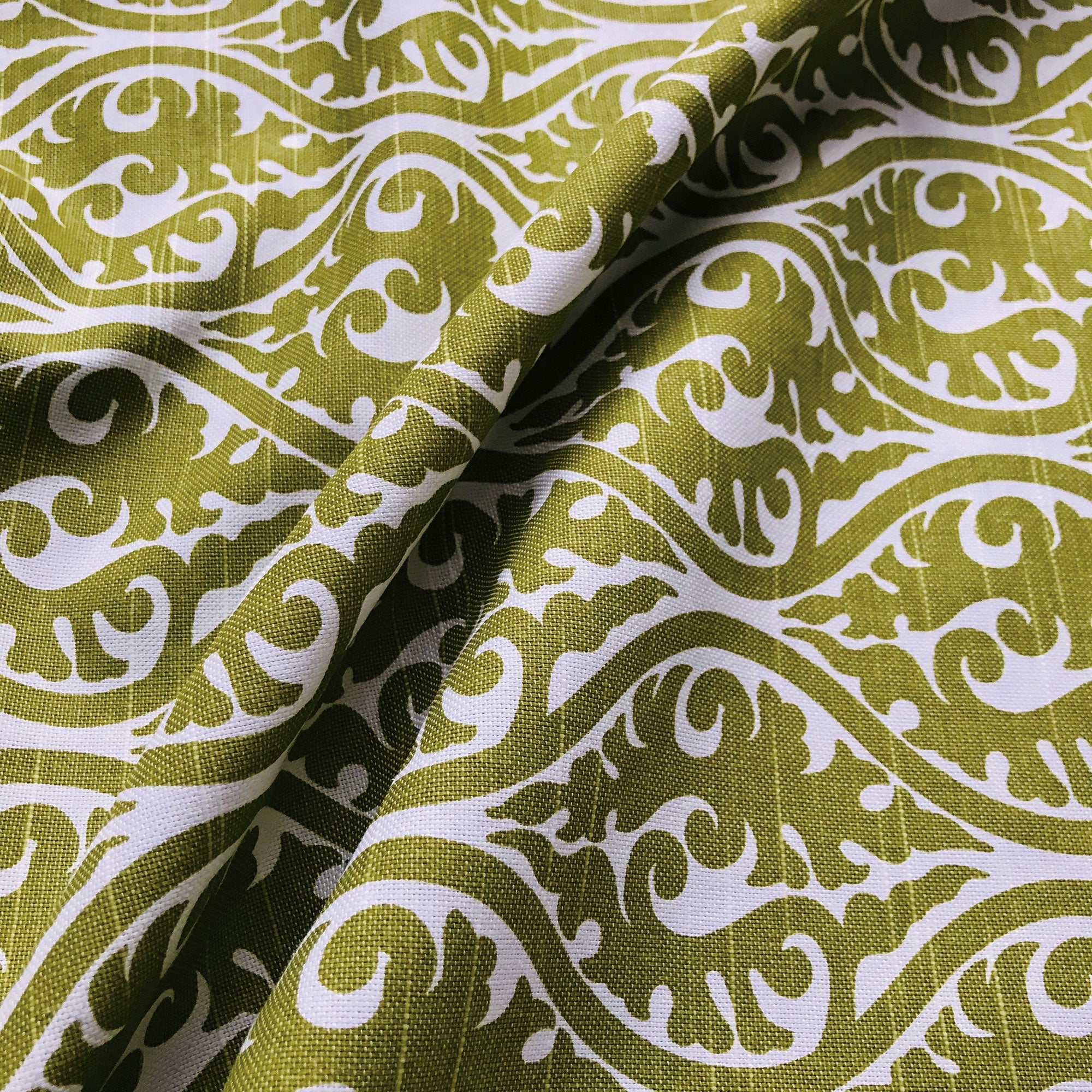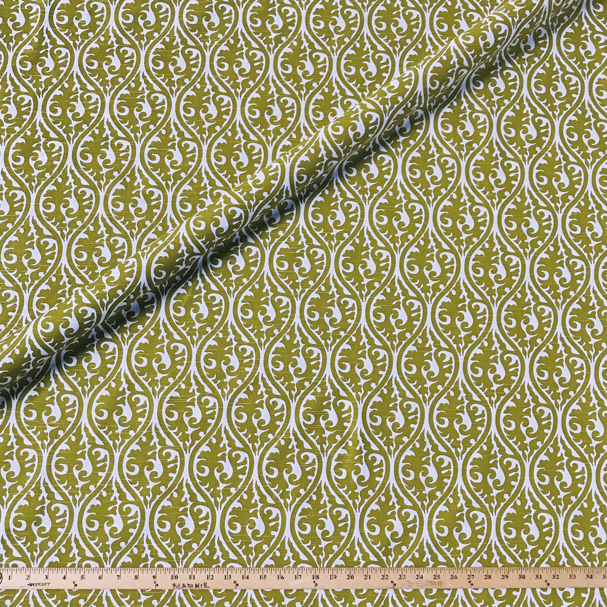 Moss Green Traditional Ogee Cotton Upholstery Fabric 54"