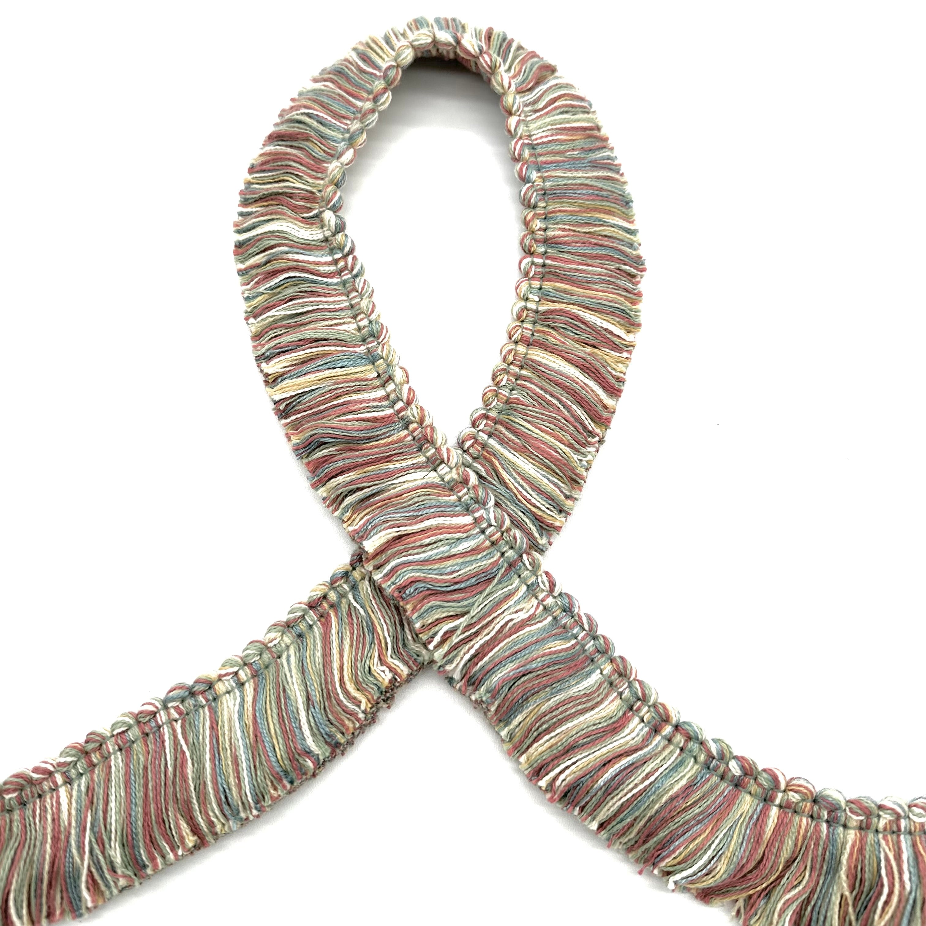 Decorative brush fringe trim in Multicolor Pastel.