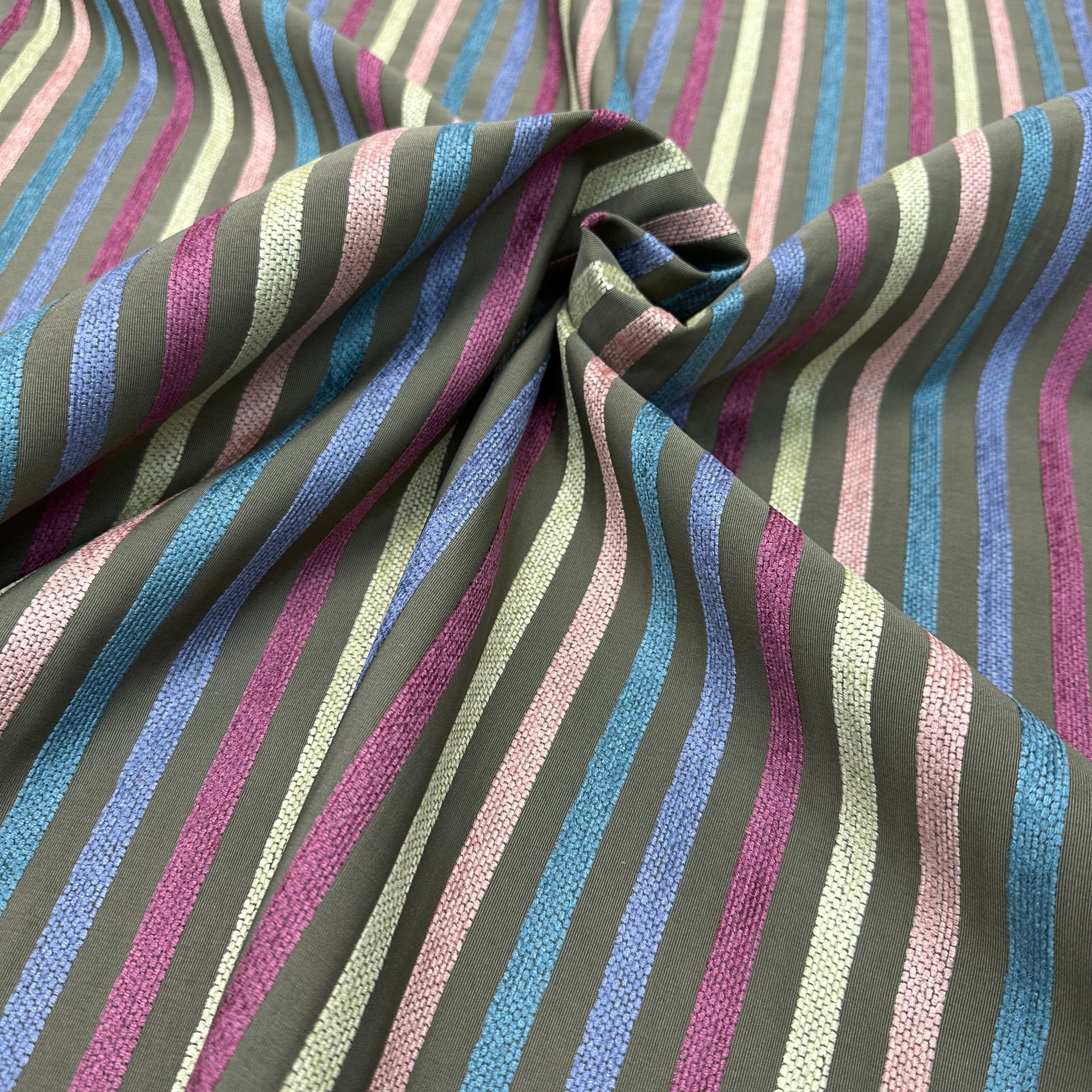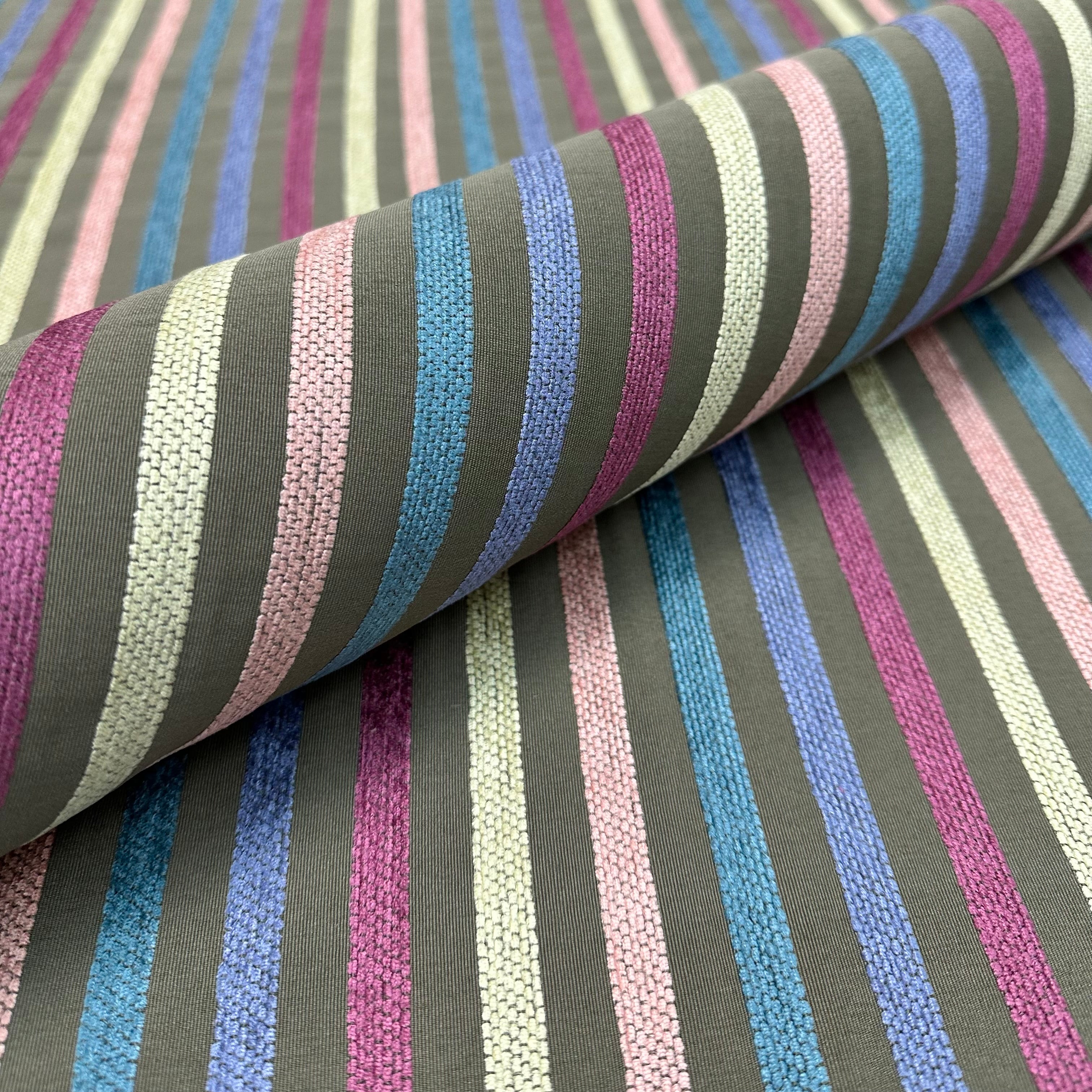 Pastel Multicolor Traditional Stripe Jacquard Fabric 60"