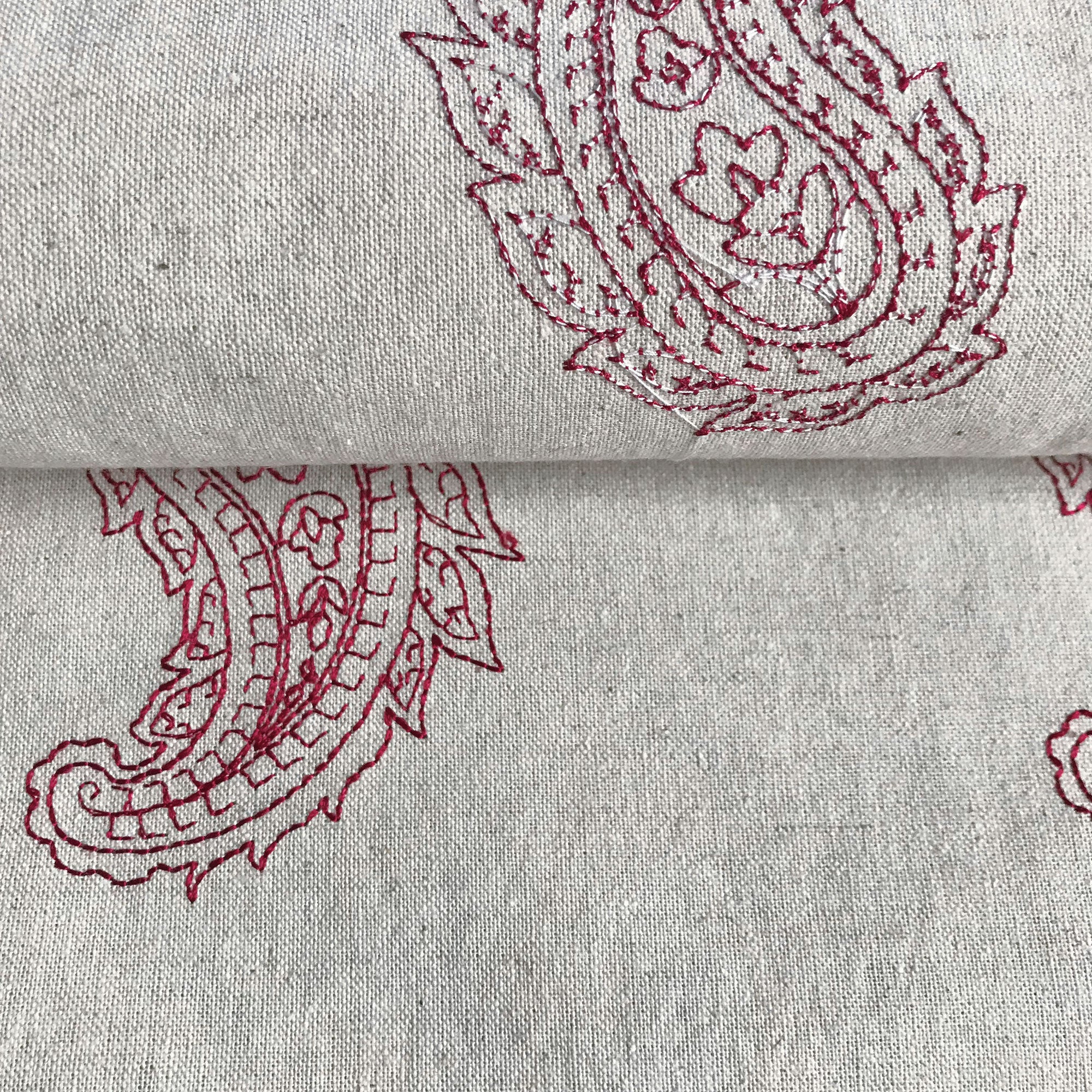 Red Country Paisley Embroidered Upholstery Fabric 54"