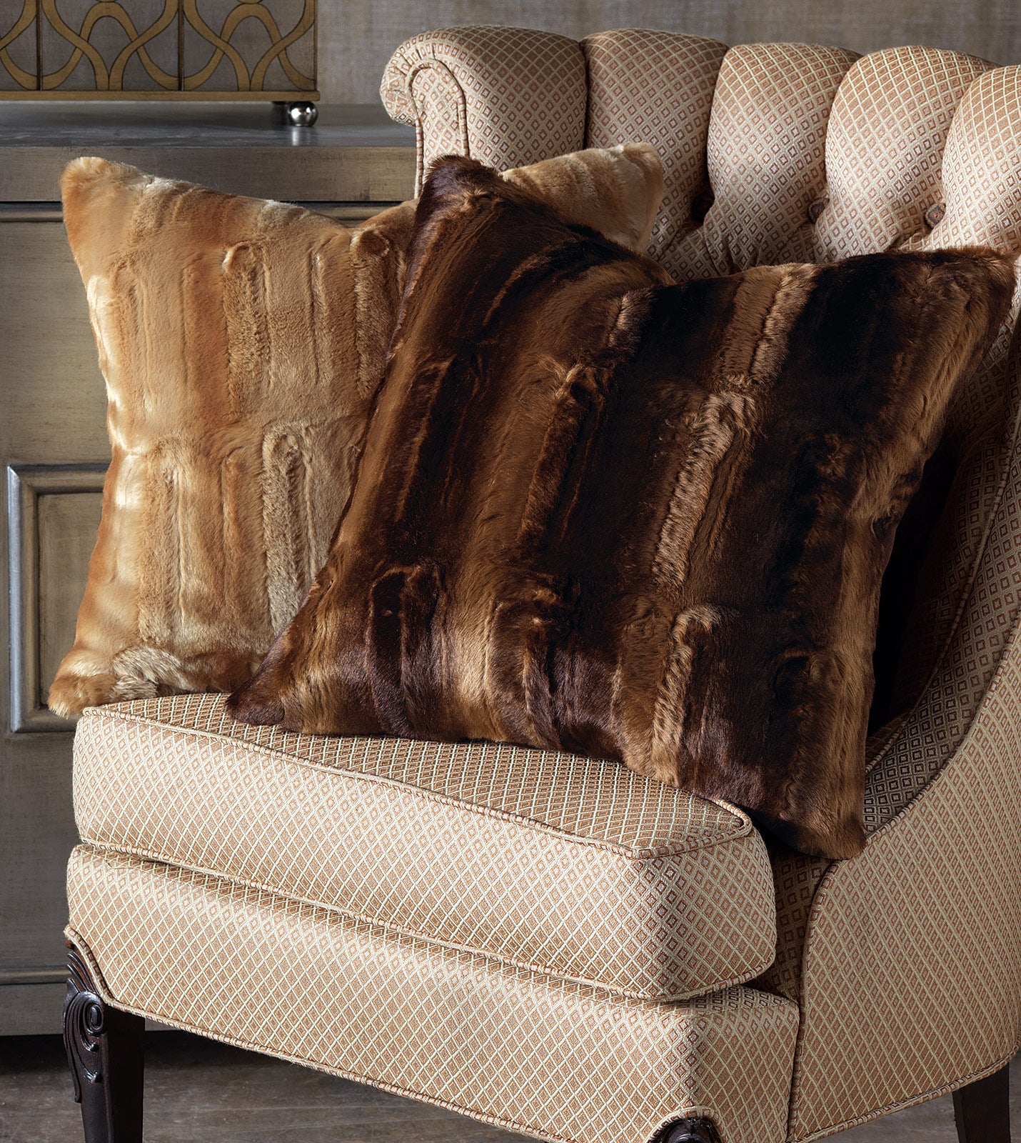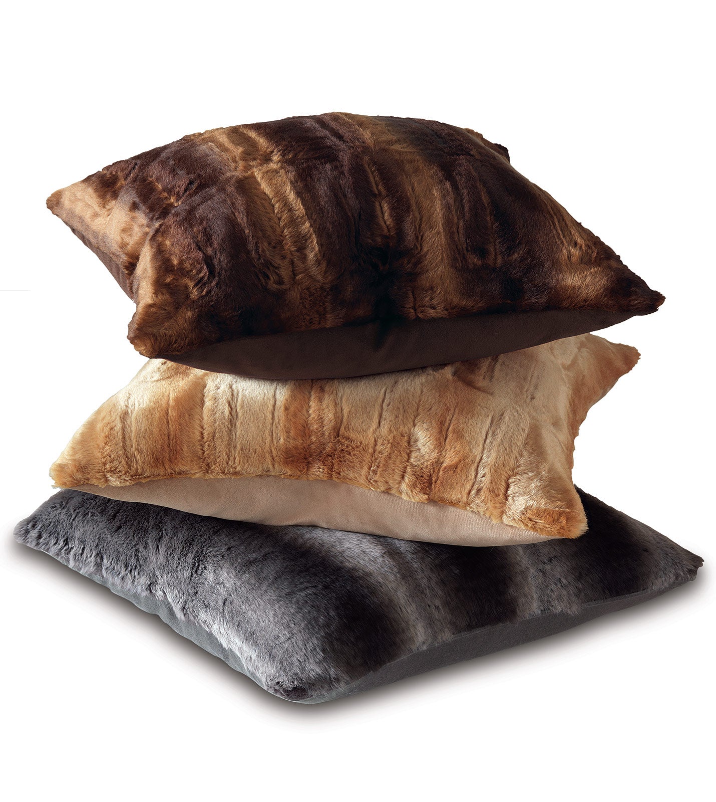 - Chocolate decorative pillow in a faux fur fabric