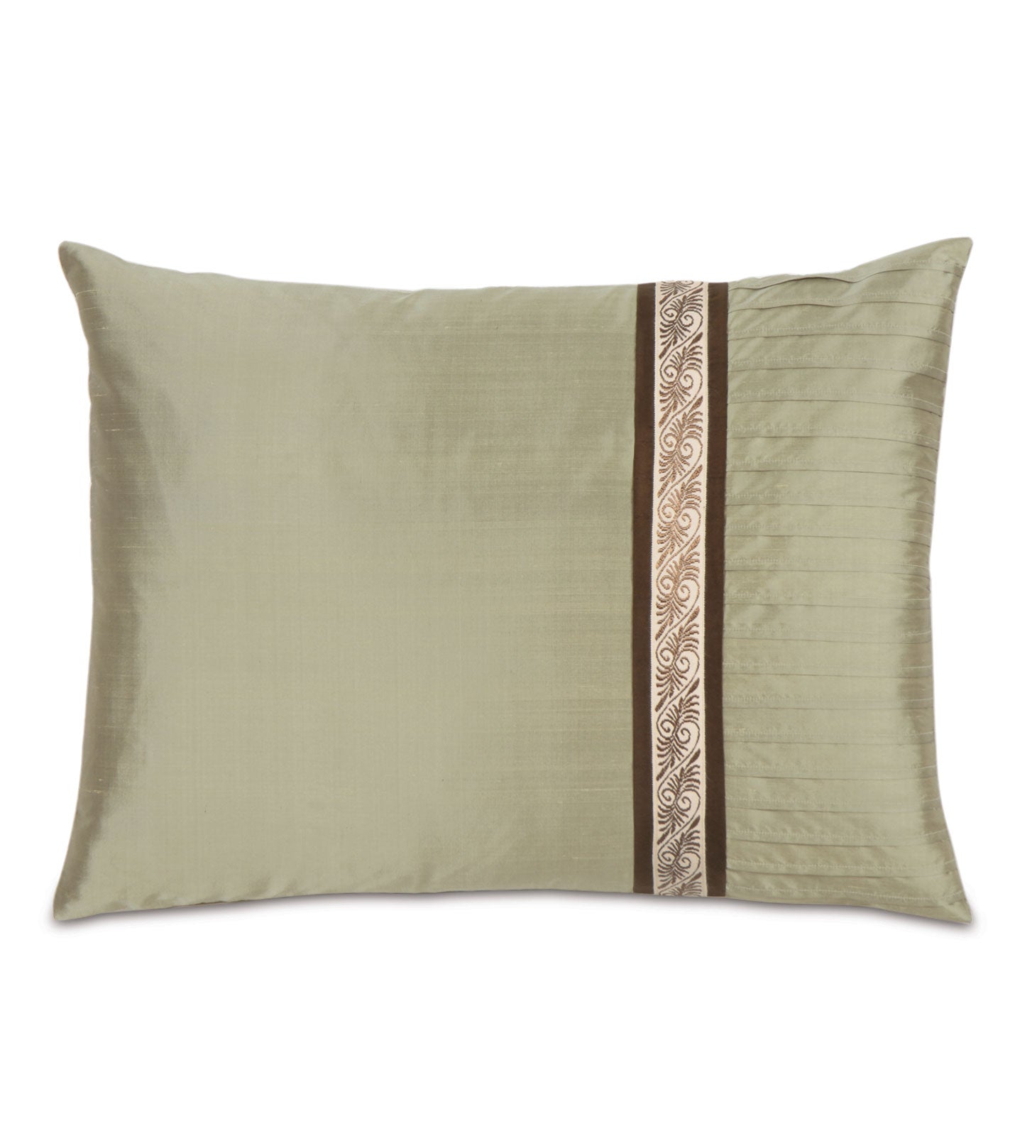 - 100% silk standard sham in sage green with pintuck detailing on the right side