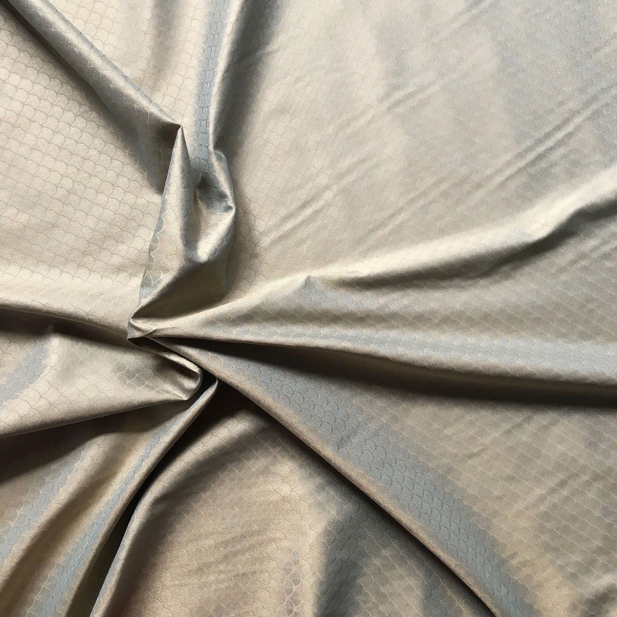 Adorn any interior with this Silver and Gold Art Deco Fan Woven Jacquard Upholstery Fabric 54", perfect for arts and crafts, DIY, upholstery, home decorating, and more. Give your bedding, chairs, cushions, windows and more a fresh new look with our selection of high quality fabrics curated by a team of trend leading designers. This luxurious scales jacquard upholstery fabric in silver and gold meets flair with versatility, offering the perfect personal touch for any art deco aesthetic. Designed and crafted by skilled textile artisans this fabric is made to last and never compromises on quality. All fabric is sold by the yard in 1-yard increments. Unfortunately, we do not accept returns on fabric orders but swatches are available.