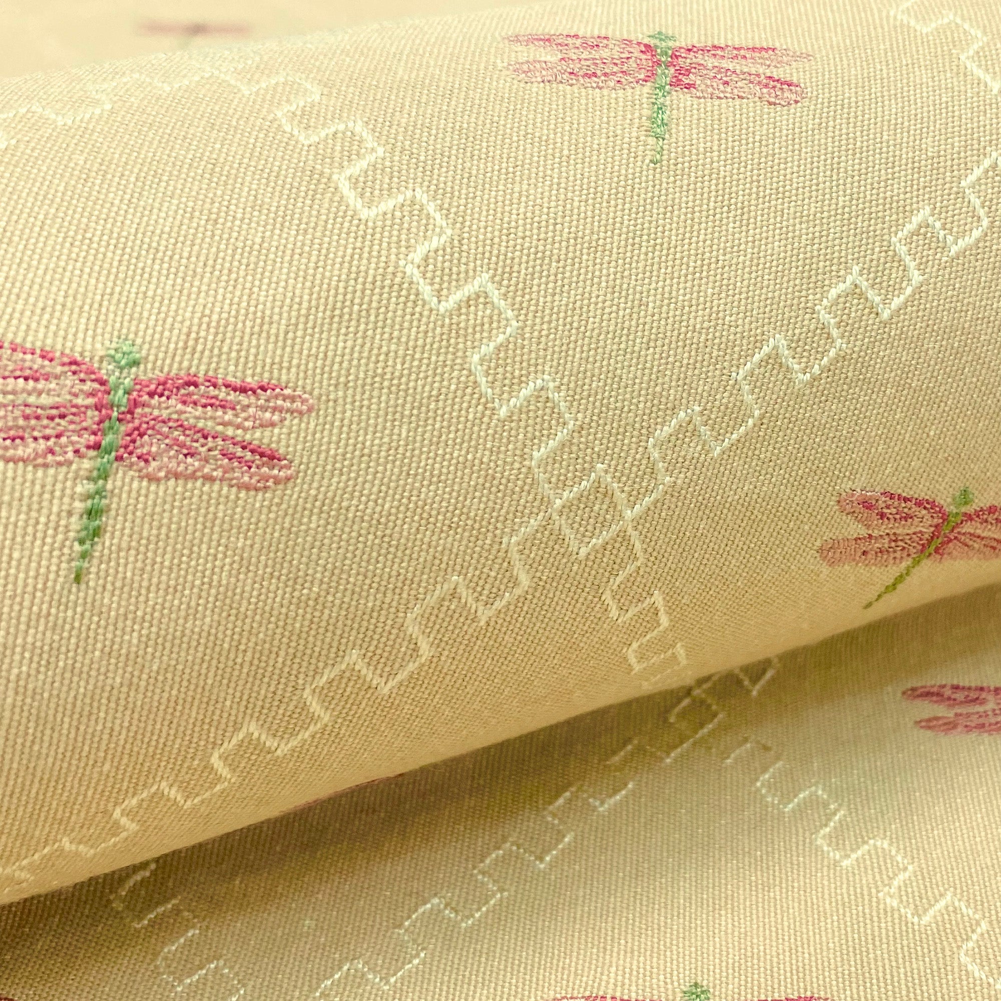 This luxurious dragonfly embroidered jacquard upholstery fabric in pastel yellow and pink meets flair with versatility, offering the perfect personal touch for any shabby chic aesthetic. Designed and crafted by skilled textile artisans this fabric is made to last and never compromises on quality. All fabric is sold by the yard in 1-yard increments. Unfortunately, we do not accept returns on fabric orders but swatches are available.