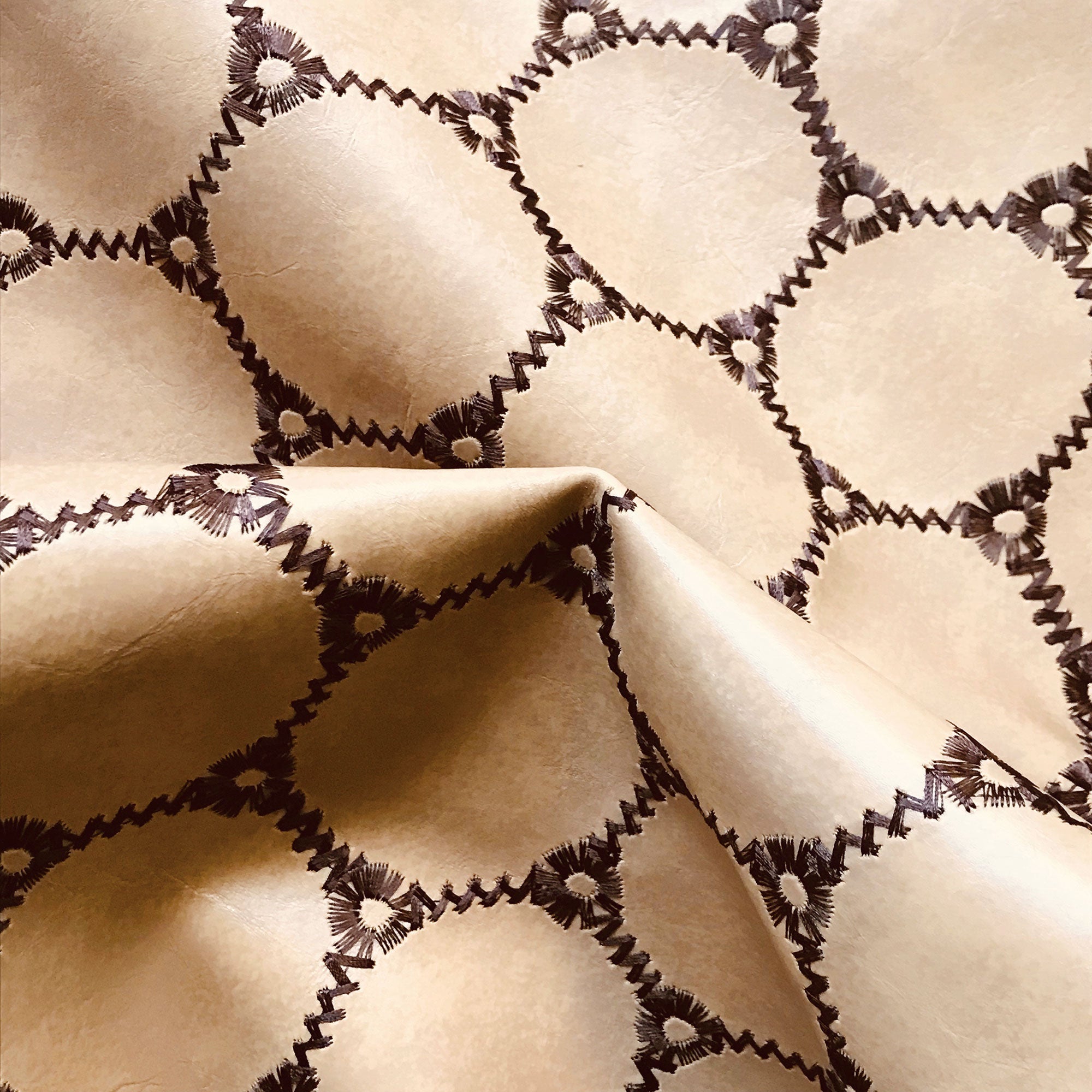 Adorn any interior with this Tan Lodge Geometric Embroidered Upholstery Fabric 54", perfect for arts and crafts, DIY, upholstery, home decorating, and more. Give your bedding, chairs, cushions, windows and more a fresh new look with our selection of high quality fabrics curated by a team of trend leading designers. This luxurious geometric embroidered upholstery fabric in tan meets flair with versatility, offering the perfect personal touch for any lodge aesthetic. Designed and crafted by skilled textile artisans this fabric is made to last and never compromises on quality. All fabric is sold by the yard in 1-yard increments. Unfortunately, we do not accept returns on fabric orders but swatches are available.