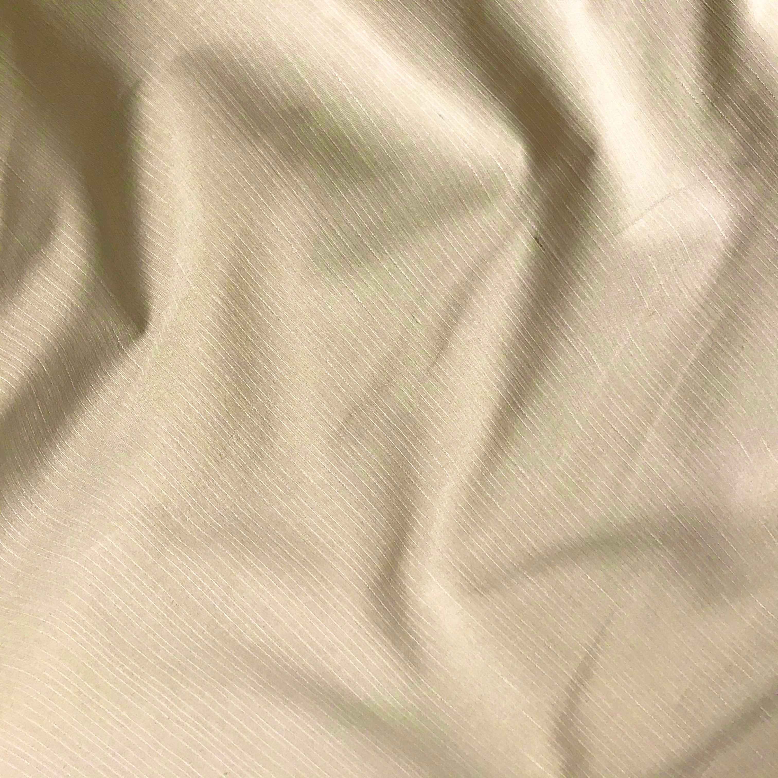 Woven flax fabric in light cream ivory hue with a solid finish to complement any home decor style.