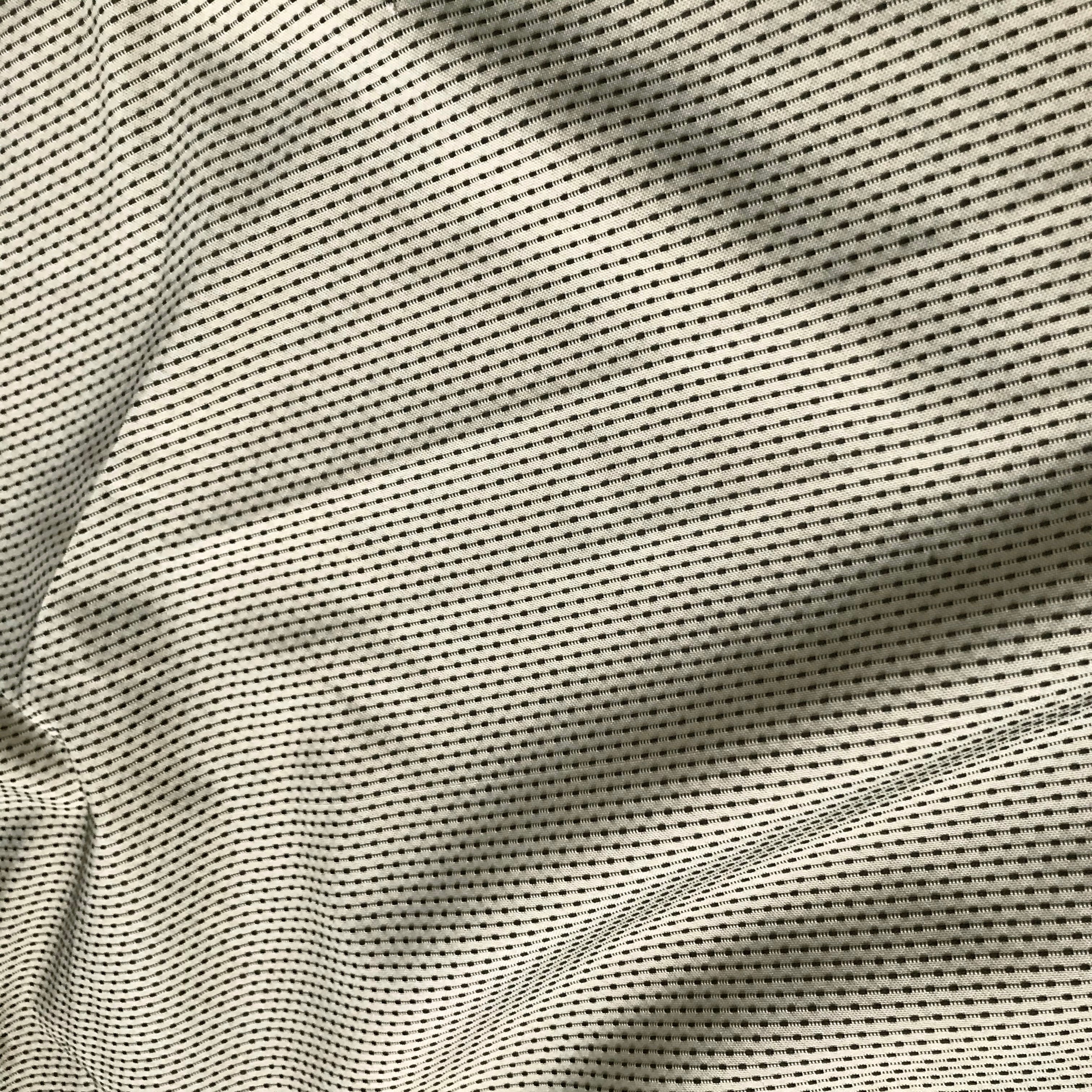 Decoratively striped pin tucked design on neutral off-white base poly-blend fabric for durability and functionality.