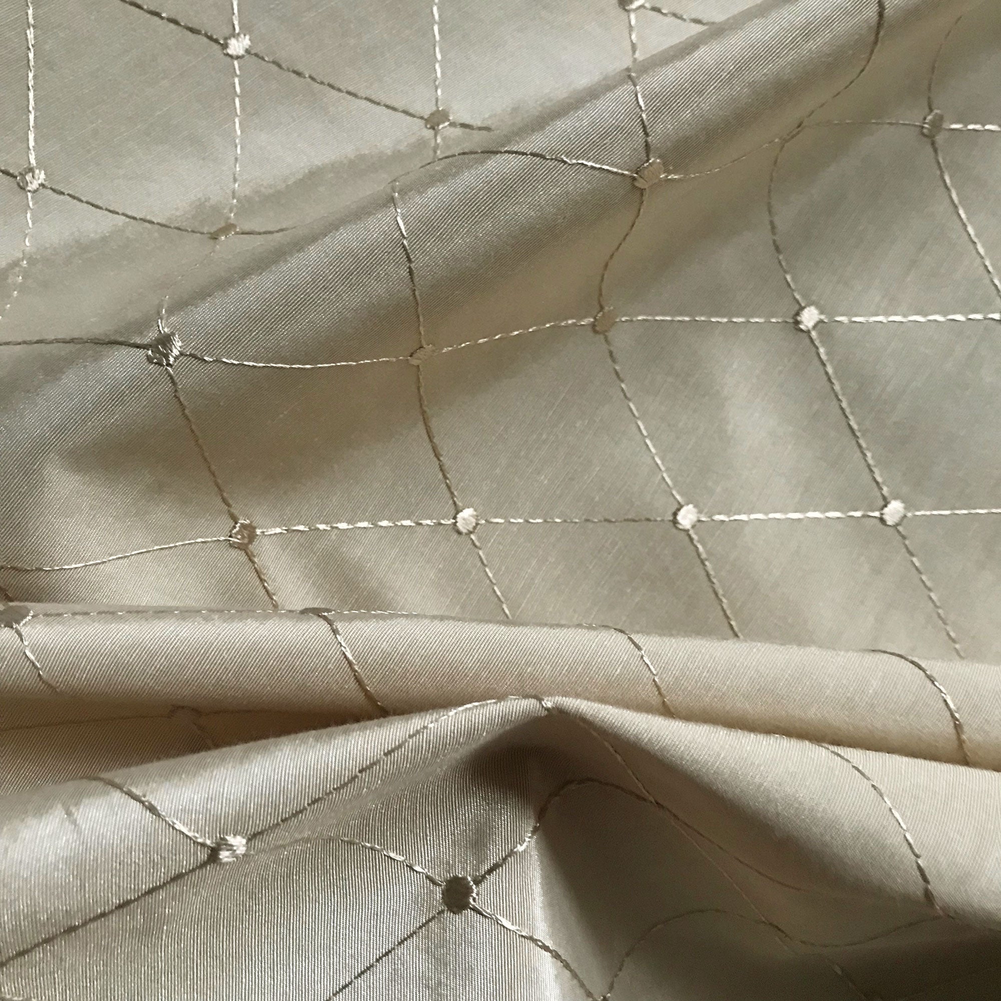 Wheat Traditional Diamond Embroidered Upholstery Fabric 54"