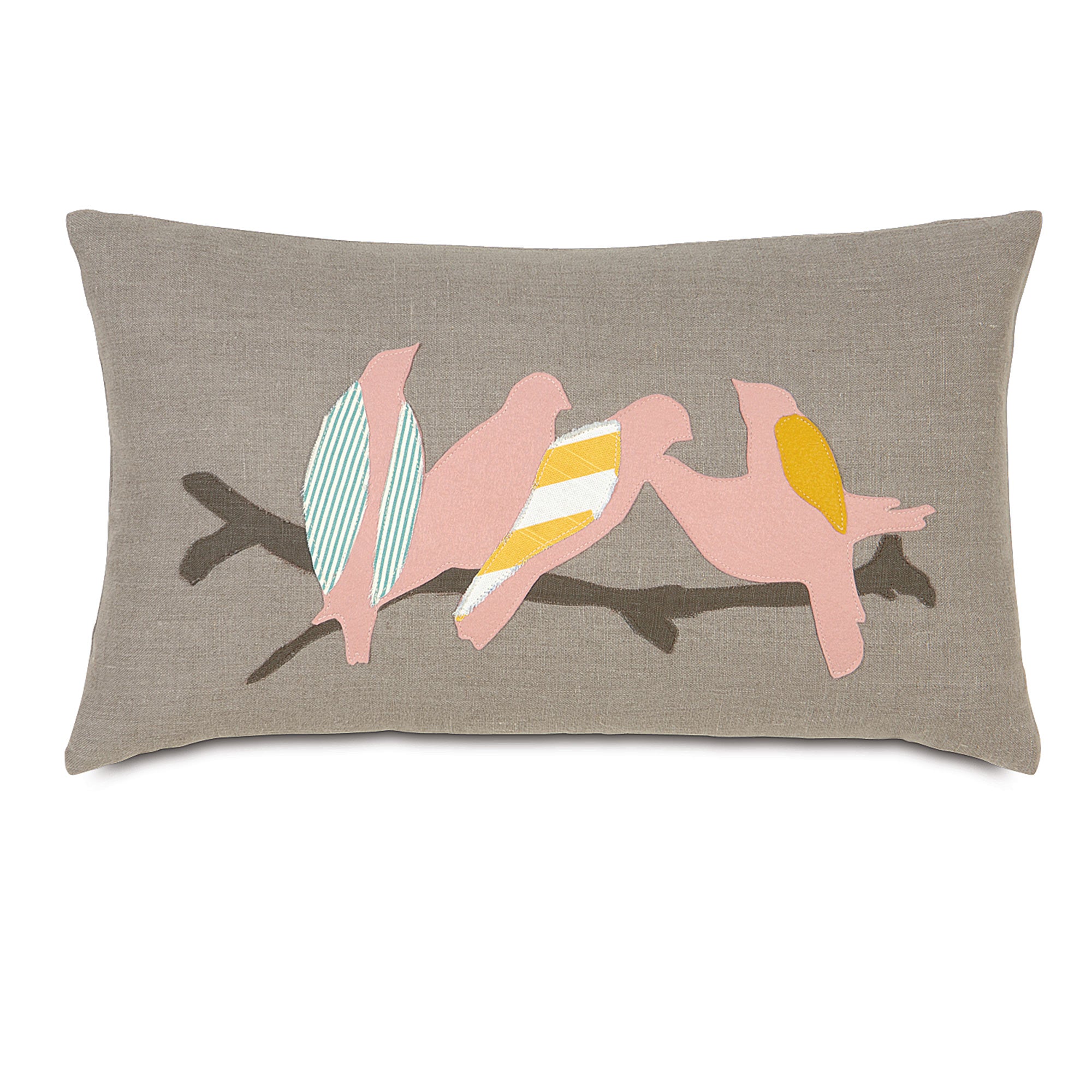 - 13x22 lumbar pillow cover with pink and gray bird appliqué