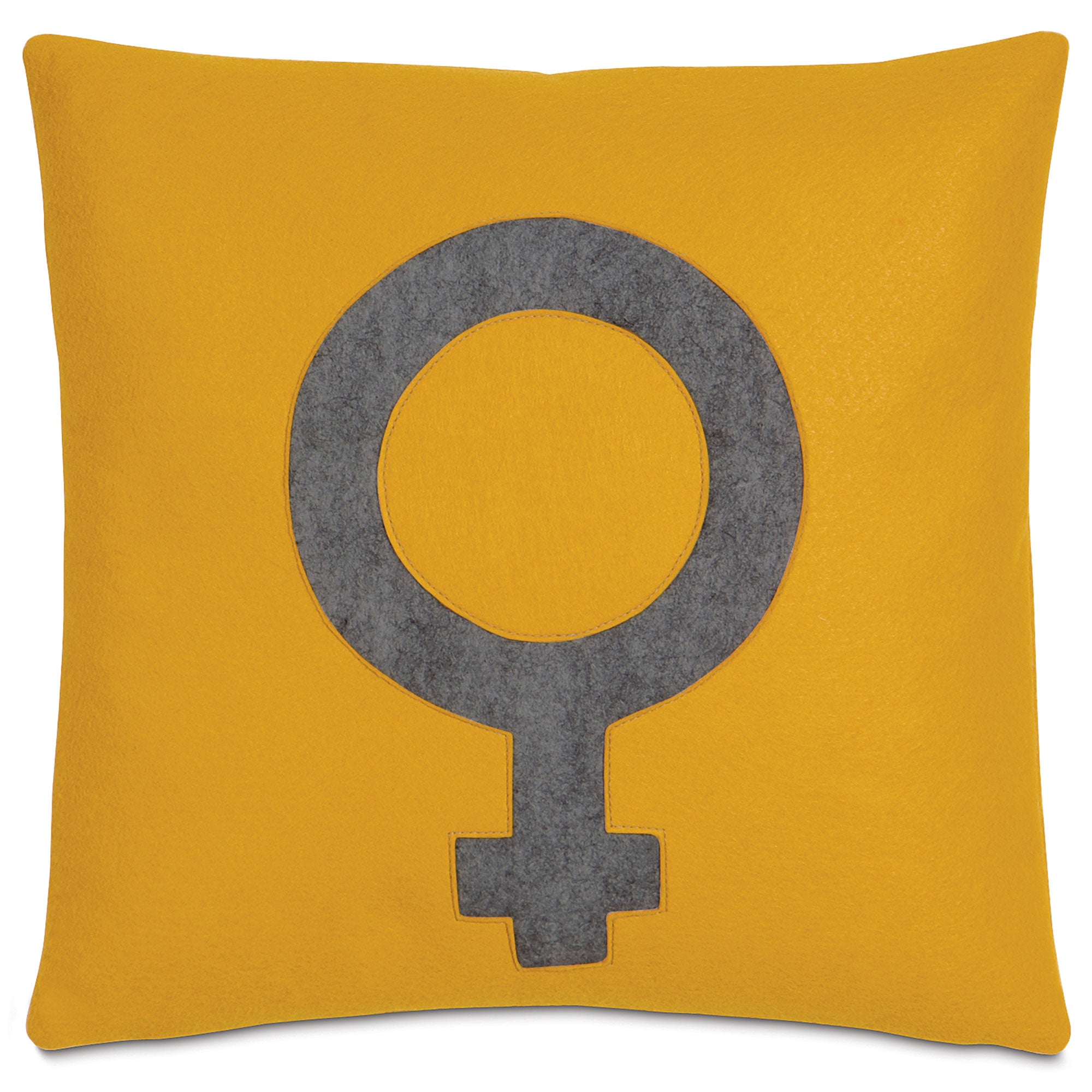 - Lemon yellow felt pillow cover featuring Venus symbol