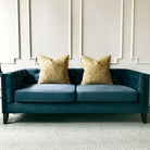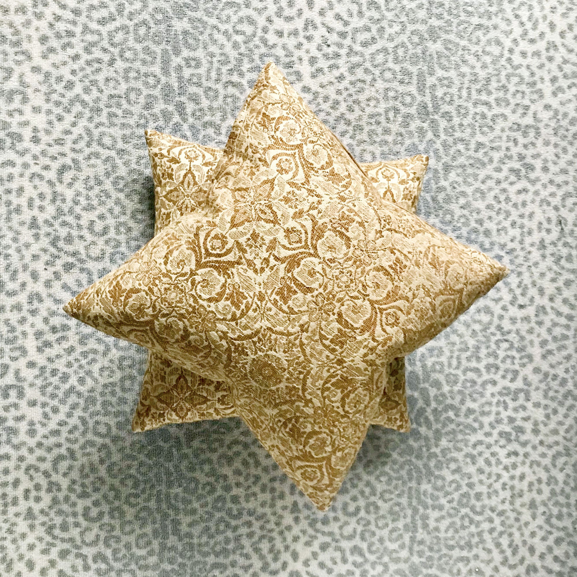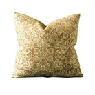 - Brocade decorative pillow cover with an intricate floral pattern in golden yellow tones